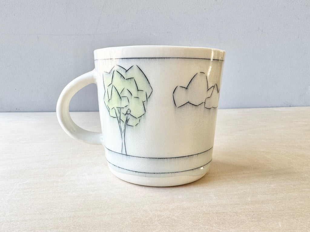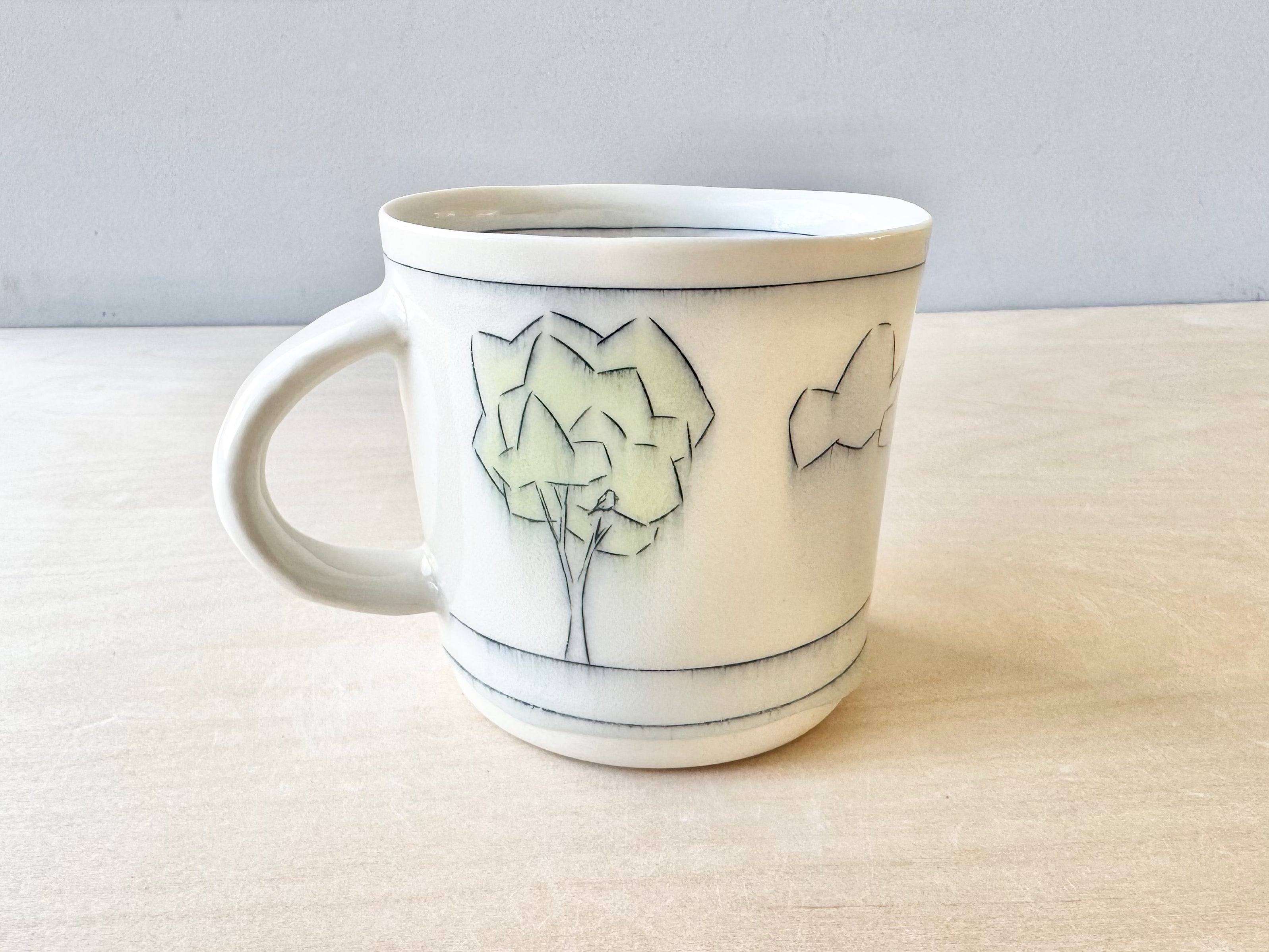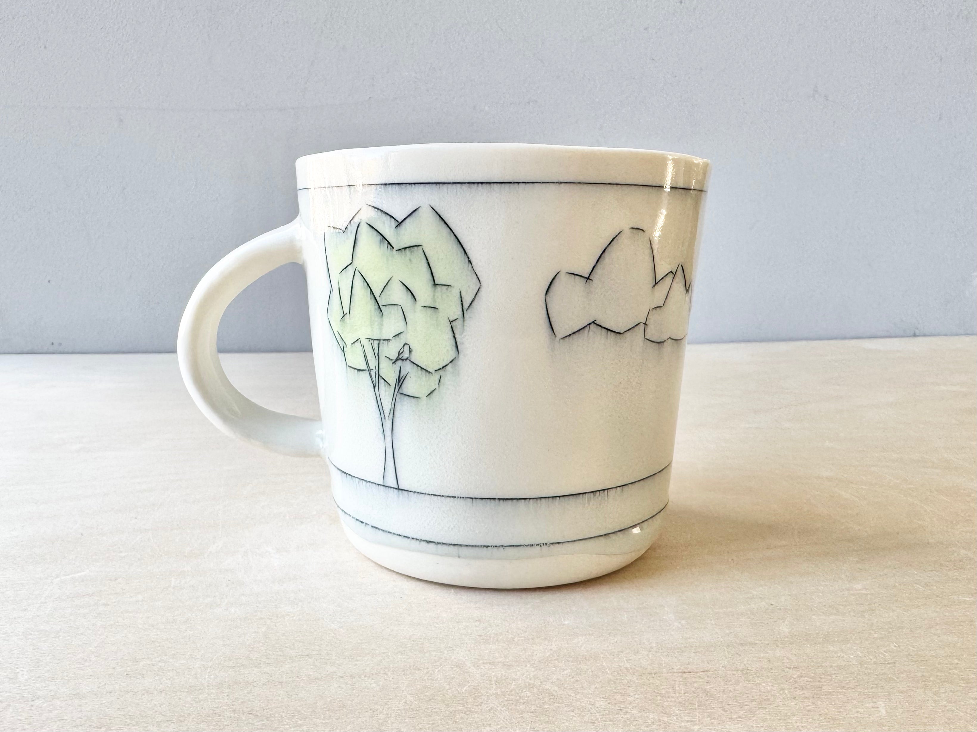 A one-of-a-kind mug inlaid with imagery. Ready-to-ship mug holds approximately 16 ounces and is dishwasher safe!